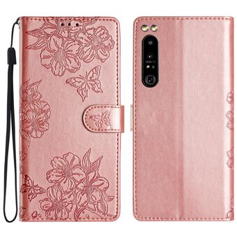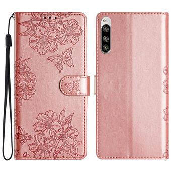 For Sony Xperia 5 Cherry Blossom Butterfly Skin Feel Embossed PU Phone Case(Rose Gold)