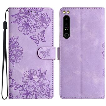 For Sony Xperia 1 IV Cherry Blossom Butterfly Skin Feel Embossed PU Phone Case(Purple)