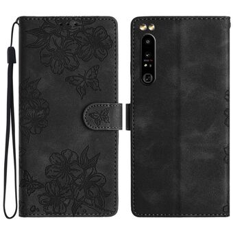 For Sony Xperia 1 IV Cherry Blossom Butterfly Skin Feel Embossed PU Phone Case(Black)