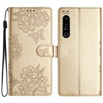 For Sony Xperia 1 IV Cherry Blossom Butterfly Skin Feel Embossed PU Phone Case(Gold)