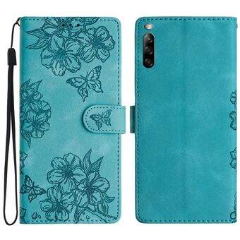 For Sony Xperia L4 Cherry Blossom Butterfly Skin Feel Embossed PU Phone Case(Blue)