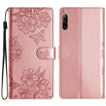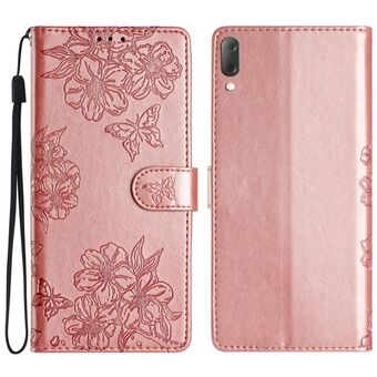 For Sony Xperia 10 V Cherry Blossom Butterfly Skin Feel Embossed PU Phone Case(Rose Gold)