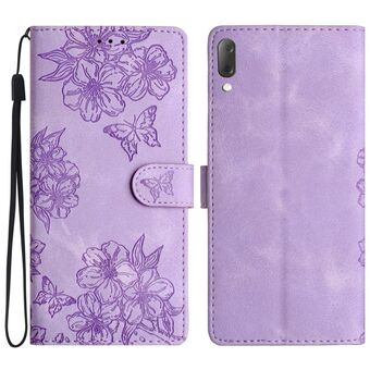 For Sony Xperia L4 Cherry Blossom Butterfly Skin Feel Embossed PU Phone Case(Purple)