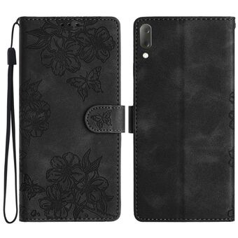 For Sony Xperia L4 Cherry Blossom Butterfly Skin Feel Embossed PU Phone Case(Black)