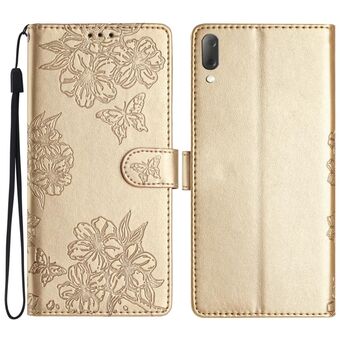 For Sony Xperia L4 Cherry Blossom Butterfly Skin Feel Embossed PU Phone Case(Gold)
