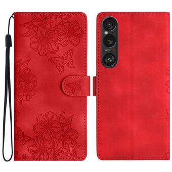 For Sony Xperia 1 VI Cherry Blossom Butterfly Skin Feel Embossed PU Phone Case(Red)