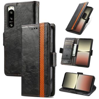For Sony Xperia 5 IV CaseNeoSplicing Dual Magnetic Buckle Leather Phone Case(Khaki)