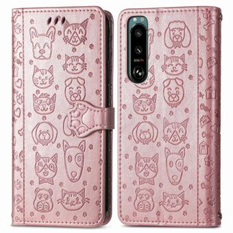 For Sony Xperia 5 IV Cat and Dog Embossed Leather Phone Case(Rose Gold)