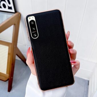 For Sony Xperia 5 IV Waves Series Nano Electroplating Genuine Leather Phone Case(Black)