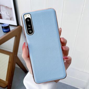 For Sony Xperia 5 IV Waves Series Nano Electroplating Genuine Leather Phone Case(Blue)