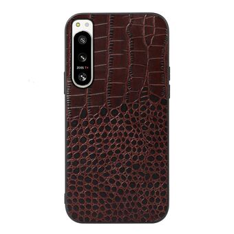 For Sony Xperia 5 IV Crocodile Texture Genuine Leather Phone Case(Coffee)