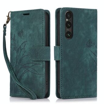 For Sony Xperia 1 V 5G 2023 Orchid Butterfly Embossed Leather Phone Case(Green)