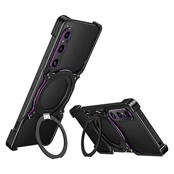 For Sony Xperia 1 V Mechanical Arm Borderless MagSafe Holder Metal Phone Case(Black Purple)