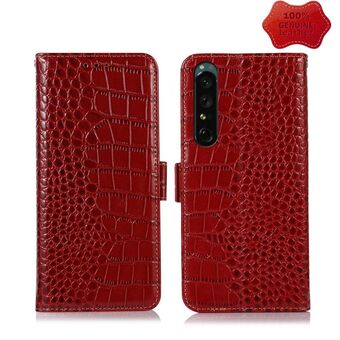 For Sony Xperia 1 IV Crocodile Top Layer Cowhide Leather Phone Case(Red)