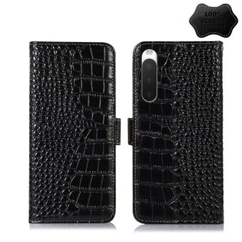 For Sony Xperia 10 IV Crocodile Top Layer Cowhide Leather Phone Case(Black)