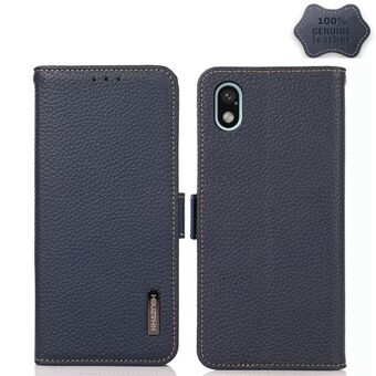 For Sony Xperia Ace III KHAZNEH Side-Magnetic Litchi Genuine Leather RFID Phone Case(Blue)