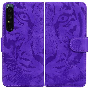 For Sony Xperia 1 IV Tiger Embossed Leather Phone Case(Purple)