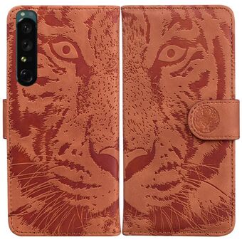 For Sony Xperia 1 IV Tiger Embossed Leather Phone Case(Brown)