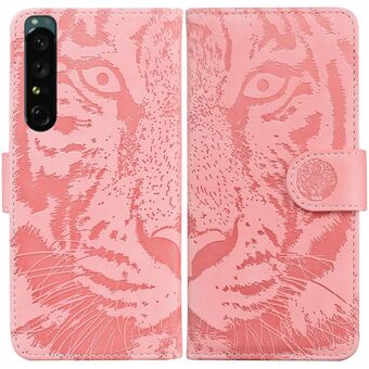 For Sony Xperia 1 IV Tiger Embossed Leather Phone Case(Pink)