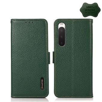 For Sony Xperia 10 IV KHAZNEH Side-Magnetic Litchi Genuine Leather RFID Phone Case(Green)