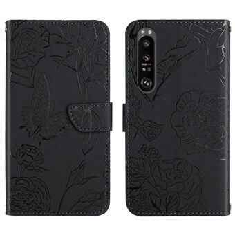 For Sony Xperia 1 III Skin Feel Butterfly Peony Embossed Leather Phone Case(Black)