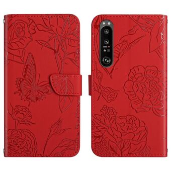 For Sony Xperia 1 III Skin Feel Butterfly Peony Embossed Leather Phone Case(Red)