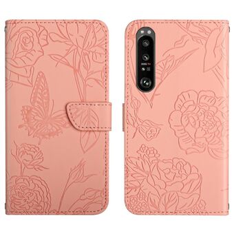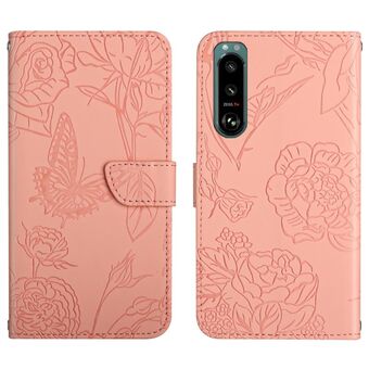 For Sony Xperia 5 III Skin Feel Butterfly Peony Embossed Leather Phone Case(Pink)
