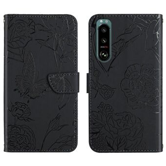 For Sony Xperia 5 III Skin Feel Butterfly Peony Embossed Leather Phone Case(Black)