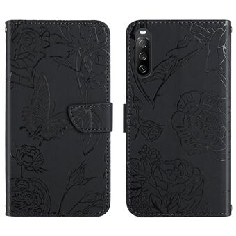 For Sony Xperia 10 III Skin Feel Butterfly Peony Embossed Leather Phone Case(Black)
