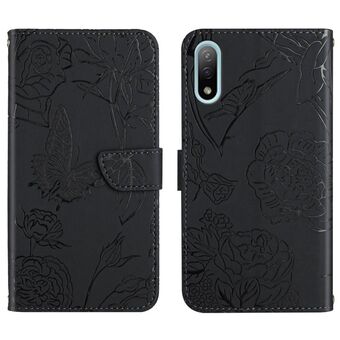 For Sony Xperia ACE II Skin Feel Butterfly Peony Embossed Leather Phone Case(Black)