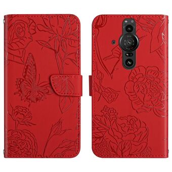 For Sony Xperia Pro-I Skin Feel Butterfly Peony Embossed Leather Phone Case(Red)