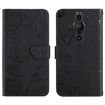 For Sony Xperia Pro-I Skin Feel Butterfly Peony Embossed Leather Phone Case(Black)