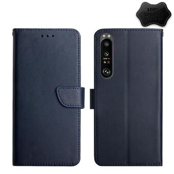 For Sony Xperia 1 IV Genuine Leather Fingerprint-proof Flip Phone Case(Blue)