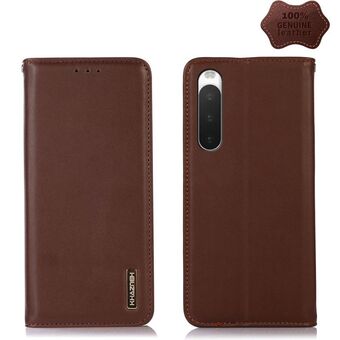 For Sony Xperia 10 IV KHAZNEH Side-Magnetic Litchi Genuine Leather RFID Phone Case(Brown)