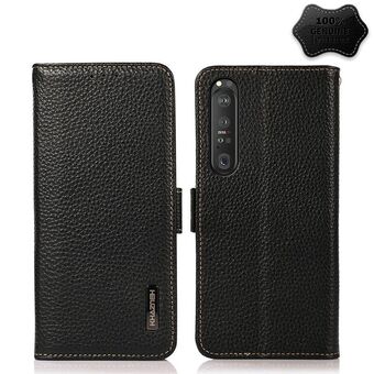 For Sony Xperia 1 III KHAZNEH Side-Magnetic Litchi Genuine Leather RFID Case(Black)
