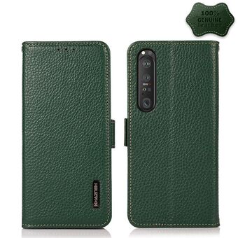 For Sony Xperia 1 III KHAZNEH Side-Magnetic Litchi Genuine Leather RFID Case(Green)