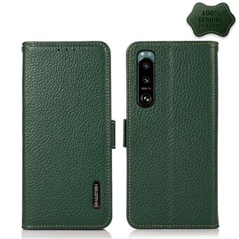 For Sony Xperia 5 III KHAZNEH Side-Magnetic Litchi Genuine Leather RFID Case(Green)