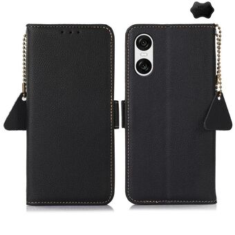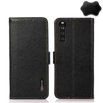 For Sony Xperia 10 III KHAZNEH Side-Magnetic Litchi Genuine Leather RFID Case(Black)