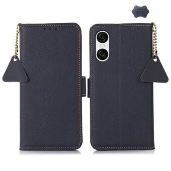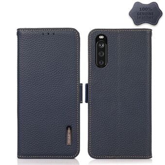 For Sony Xperia 10 III KHAZNEH Side-Magnetic Litchi Genuine Leather RFID Case(Blue)