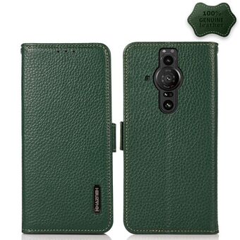 For Sony Xperia Pro-I KHAZNEH Side-Magnetic Litchi Genuine Leather RFID Case(Green)