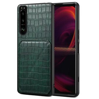 For Sony Xperia 5 III Denior Imitation Crocodile Leather Back Phone Case with Holder(Green) (Denior)