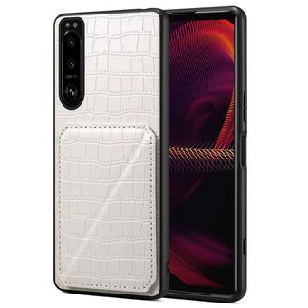 For Sony Xperia 5 III Denior Imitation Crocodile Leather Back Phone Case with Holder(White) (Denior)