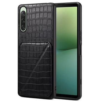 For Sony Xperia 10 V Denior Imitation Crocodile Leather Back Phone Case with Holder(Black) (Denior)