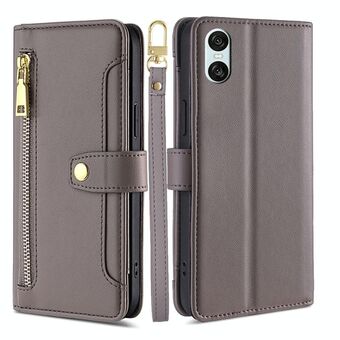 For Sony Xperia 10 VI Lite Sheep Texture Cross-body Zipper Wallet Leather Phone Case(Grey)