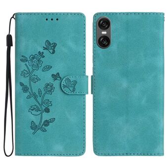 For Sony Xperia 10 VI Flower Butterfly Embossing Pattern Leather Phone Case(Blue)