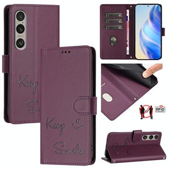 For Sony Xperia 5 IV Smile Embossing RFID Leather Phone Case(Violet)