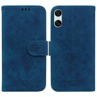 For Sony Xperia 5 VI Butterfly Rose Embossed Leather Phone Case(Blue)