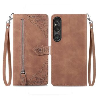 For Sony Xperia 1 VI Embossed Flower Zipper Leather Phone Case(Red)