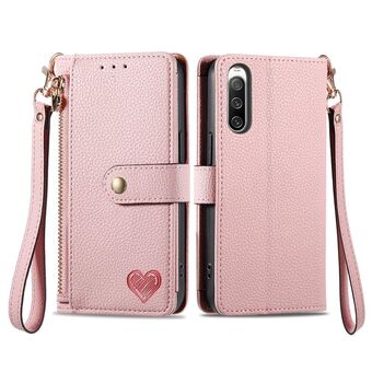 For Sony Xperia 10 IV Love Zipper Lanyard Leather Phone Case(Pink)