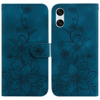 For Sony Xperia 10 VI Lily Embossed Leather Phone Case(Dark Blue)